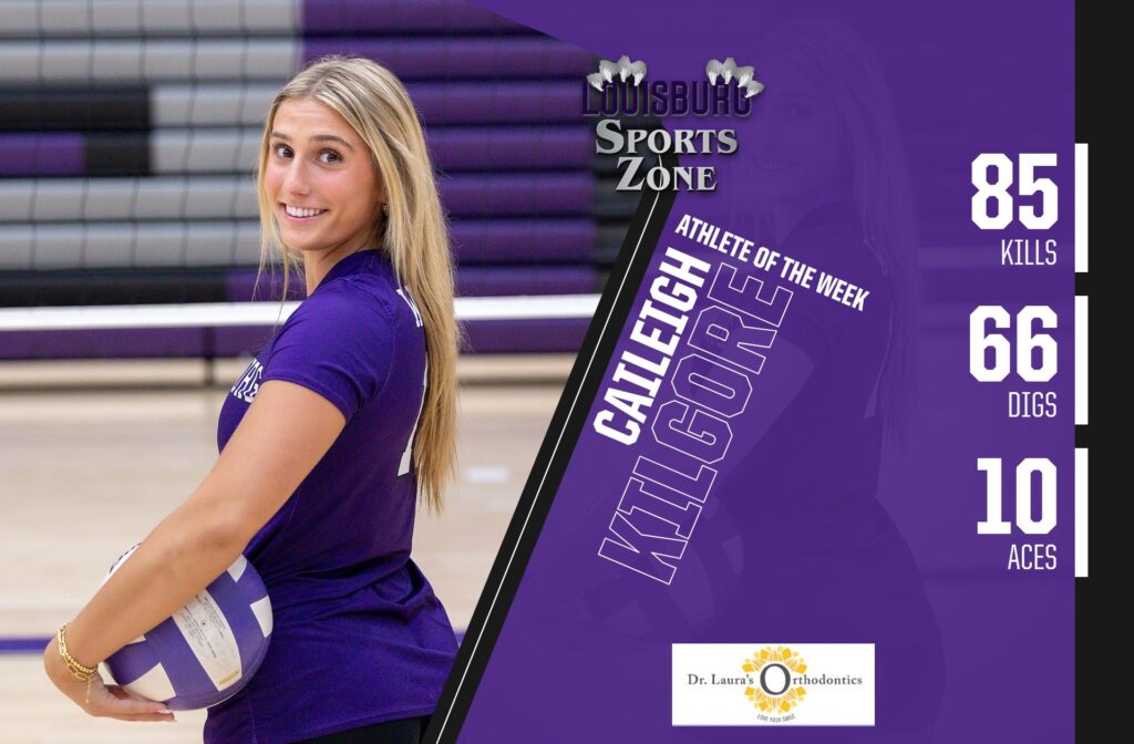 Louisburg senior Caileigh Kilgore put together a big week for the Wildcat volleyball team as she helped the Wildcats to a 6-3 week, and one that ended with a second place finish at the Frontenac Invitational on Saturday. Kilgore, who plays all six rotations for Louisburg, contributed on both ends of the floor. She led the team in three statistical categories.