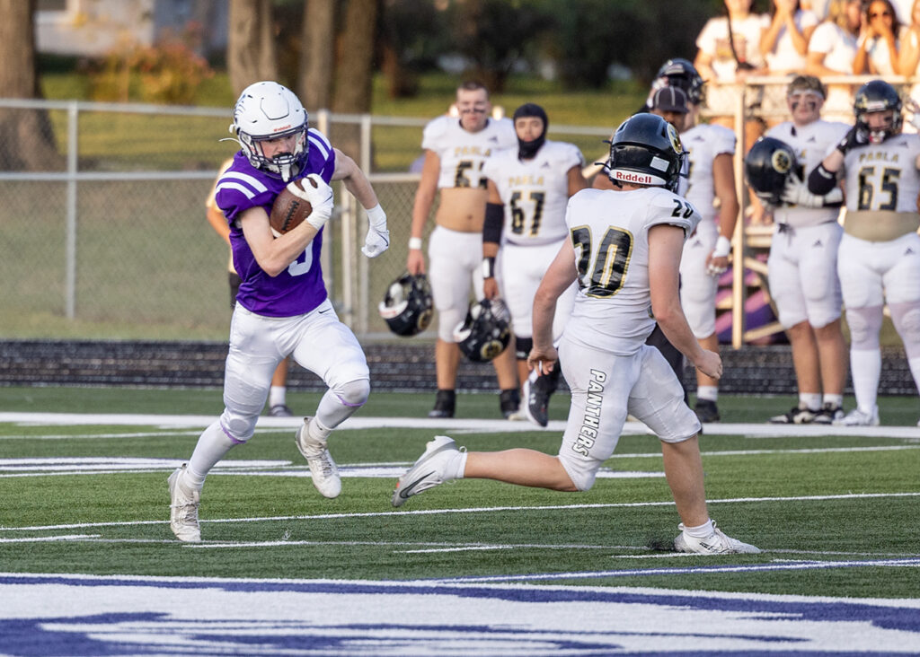 On fourth and 2 near midfield, Paola running back Bodhi Shay broke free around the left side and scored on a 46-yard touchdown early in the fourth quarter in what was a 14-point swing for the Panthers.